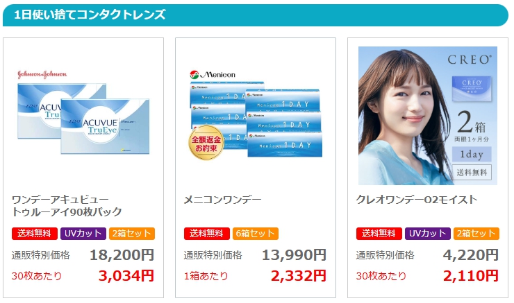 ほとんどのコンタクトレンズが処方箋不要で購入できます。眼科に行く時間が取れない方や、すぐにリピート購入したい方にも便利です。