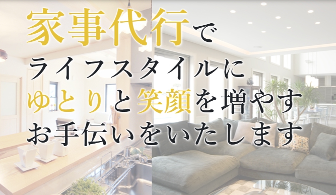 - 掃除代行:リビングやキッチン、トイレ、浴室などの掃除。