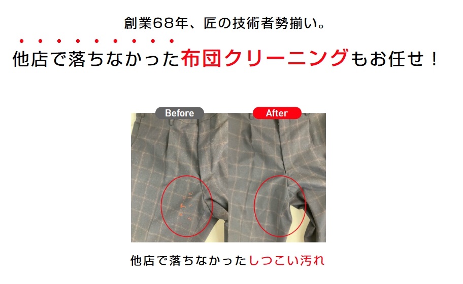 また、汗ジミや黄ばみといった落ちにくい汚れも、シミ抜き職人による個別対応でしっかり対応。ほかの宅配クリーニングと比べても、仕上がりに対する満足度が非常に高い理由はここにあります。