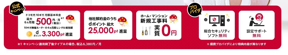 また、ドコモ光の正規代理店やプロバイダから申し込むことで、最大数万円規模のキャッシュバックやdポイント進呈など、豪華な特典が受けられるのも大きなメリットです。これらの特典は時期によって内容が変わることがあるため、申し込み前に公式サイトやキャンペーン情報をチェックすることが重要です。